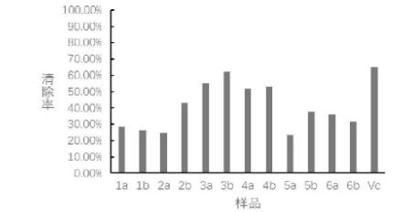 實(shí)驗(yàn)以食品、醫(yī)藥工業(yè)常用抗氧化劑Vc做對(duì)照,對(duì)各提取物部分抗氧化活性進(jìn)行比較,發(fā)現(xiàn)濃度較小或較大時(shí),對(duì)照Vc的清除率與各提取物清除率差異較大或不明顯。因樣品數(shù)量較多,為了便于比較,濃度最終選為1.00mg/mL,實(shí)驗(yàn)結(jié)果見下圖。