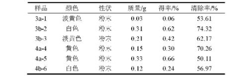 從上表可以看出,制備薄層層析法所得各樣品對(duì)DPPH自由基均有清除作用。在1.00mg/mL濃度時(shí),各樣品對(duì)DPPH自由基清除率大小順序?yàn)椋?b-2>4a-4>3b-3>4b-6>3a-1>4a-5,其中樣品3b-2和4a-4清除率較高。