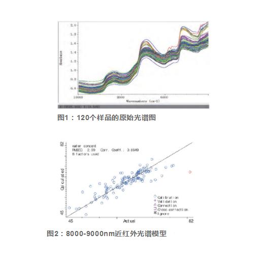 將近紅外儀器預(yù)熱30min,打開測試工作流,點擊“測試”,收集樣品近紅外光譜圖,隨即利用TQ軟件進行數(shù)據(jù)處理。