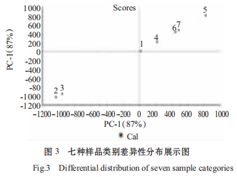 統(tǒng)計分析結(jié)果顯示:試品花了7天時間和5號整體口味量較高,具備科研使用價值。圖上1、2號試品為實驗核對樣,3號為一切正常試品,綜合性考慮到明確對仍然2號、3號和出現(xiàn)異常試品5號和花了7天時間納入GC-O研究方案,并對大數(shù)據(jù)分析的正丙醇、甲基叔丁基醚等出現(xiàn)異??谖吨攸c關(guān)注。