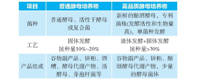 表2酵母菌培育物與活性干酵母的差別