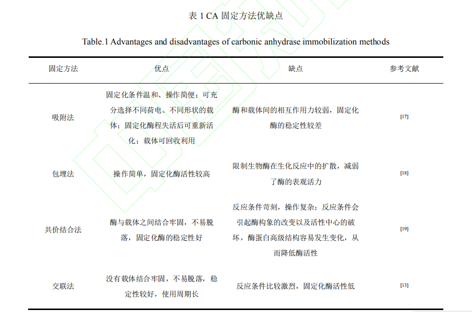 CA 是一種以 Zn2 為活性中心的金屬酶,具備很大的微生物催化反應(yīng)發(fā)展?jié)摿Α,F(xiàn)階段,運(yùn)用碳酸酐酶法收集 CO2的具體原理是運(yùn)用碳酸酐酶催化反應(yīng) CO2水合轉(zhuǎn)化成碳酸根后,在 Ca2 、Mg2 等金屬離子的參加下將 CO2 以硫化物的方式確定出來。殊不知,CA 成本費(fèi)較高、分散的 CA 在高溫和有機(jī)廢氣成分大等極端情況下可靠性差、可器重能力差,限定了其工業(yè)生產(chǎn)運(yùn)用。固定化技術(shù)性當(dāng)做處理以上情況的有效的辦法之一,是運(yùn)用物理學(xué)或有機(jī)化學(xué)方式.將分散酶封禁在媒介原材料內(nèi)或限定在一定地區(qū)內(nèi)開展催化反應(yīng)的一種技術(shù)性。CA 的固定化酶維持了分散 CA 反映標(biāo)準(zhǔn)柔和、高效率專一的特點(diǎn),與此同時(shí)又填補(bǔ)了分散CA 的不夠,具有存儲(chǔ)可靠性高、便于分離出來回收利用、可多次重復(fù)使用、持續(xù)實(shí)際操作可控性、工藝技術(shù)簡單等一系列優(yōu)勢,固定化酶技術(shù)性擴(kuò)張了酶在現(xiàn)實(shí)制造中的