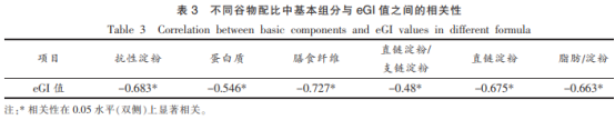 2.5多谷類共壓擠粉中關(guān)鍵營(yíng)養(yǎng)成分成分與EGl值相關(guān)分析