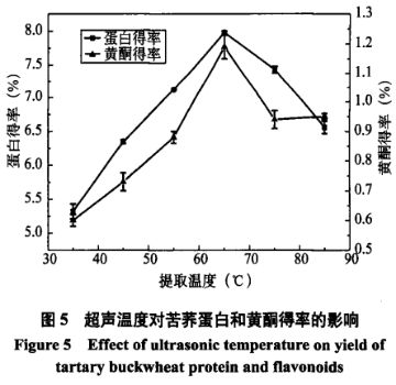 ⑤溫度對苦蕎麥蛋白質(zhì)和黃酮類化合物、多糖類化學(xué)物質(zhì)超聲波輔助同歩獲取的危害