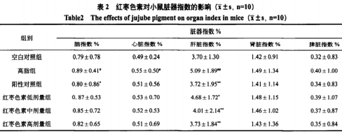 1、大棗黑色素對(duì)小白鼠休重內(nèi)臟器官指數(shù)值的危害