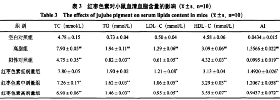 調(diào)整血糖水準(zhǔn),表明大棗黑色素降低血脂很有可能與大棗黑色素調(diào)整脂酶促反應(yīng)相關(guān)。