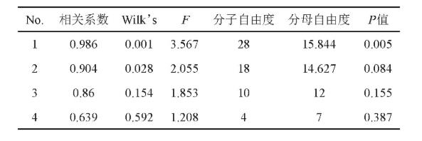 典型性相關性分析是科學研究2組自變量中間相輔相成的關聯(lián),剖析2組自變量中間關聯(lián)性的一種方式,它可以揭露出2組自變量中間的相互關系。為了更好地進一步查探蘭州百合土壤層理化性質(zhì)與酶促反應中間的關聯(lián)性,選用典型性有關統(tǒng)計分析方法研究彼此之間的定量分析統(tǒng)計分析關聯(lián)。土壤層理化性質(zhì)U(X1:pH;X2:可溶有機碳;X3:堿解氮;X4:速效性磷;X5:C/N;X6:C/P;X7:N/P)和酶促反應V(Y1:過氧化氫酶;Y2:綿白糖酶;Y3:脲酶;Y4:堿性磷酸酶)中間的相關分析。由表3得知,4組有關系數(shù)矩陣中僅有第一組U1和V1的統(tǒng)計量為0.986,P=0.005,做到P<0.01極明顯水準,說明土壤層理化性質(zhì)與酶促反應有關緊密。因而,對第一組典型性自變量實現(xiàn)剖析。
