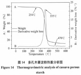 2、多孔結(jié)構(gòu)木薯淀粉熱重分析圖