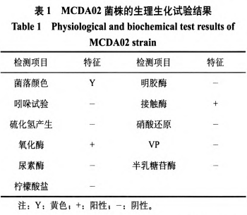 2、菌種MCDA02的評定菌種MCDA02為革蘭氏陽性菌呈陰性短鏈球菌(圖2b),無芽胞。該菌種在LB固態(tài)塑造上塑造48h后:淡黃色,不全透明,表層光潔潮濕,環(huán)形,邊沿整齊,核心稍凸起,易挑菌(圖2a)。該菌種果膠酶、吲哚實驗、氯化氫造成、VP實驗、磷酸鹽復(fù)原實驗、尿素溶液酶、檸檬酸鈉鹽均呈呈陰性,抗霉素、觸碰酶實驗均為呈陽性(表1)。菌種MCDA0216SrDNA序列遞交GenBank(登錄名:MH454348),BLAST核對后發(fā)覺菌種MCDA02與Microbacteriumesteraromaticum的開放閱讀框最大。運用MEGA9.0手機軟件根據(jù)臨接法搭建系統(tǒng)發(fā)育樹(圖3),菌種MCDA02與Microbacteriumesteraromaticum親緣關(guān)系近期,將菌種MCDA02評定為Microbacteriumesteraromaticum。現(xiàn)階段還沒見酯香微鏈球菌產(chǎn)幾丁質(zhì)脫乙酰酶的報導(dǎo)。