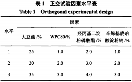 ②正交試驗(yàn)選擇高脂肪卡士達(dá)餡為研究對(duì)象,依據(jù)單要素結(jié)果融合早期產(chǎn)品研發(fā)工作經(jīng)驗(yàn),設(shè)計(jì)方案3要素3水準(zhǔn)正交試驗(yàn),采用L9(34)正交表,以感觀點(diǎn)評(píng)為根據(jù),科學(xué)研究不一樣要素對(duì)卡士達(dá)餡的危害,得到最佳計(jì)劃方案后開展耐烤制認(rèn)證實(shí)驗(yàn),正交和要素及水平考試見表1。