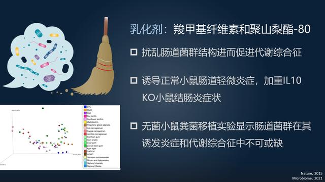現(xiàn)在有很多的研究表明,很多食用添加劑——譬如說甜味素、添加劑、破乳劑及其聚醚多元醇、多功能性阿拉伯膠這些,他們還可以經(jīng)過調(diào)整人體的腸菌的構(gòu)造或是是作用,或是是他們還可以被腸菌新陳代謝活性,或是是新陳代謝減毒,而排除身體之外來危害人體的作用,根據(jù)危害人體的肝-腸軸、腸-腦軸或是是肺-腸軸這些,來危害大家人體人體器官的作用。