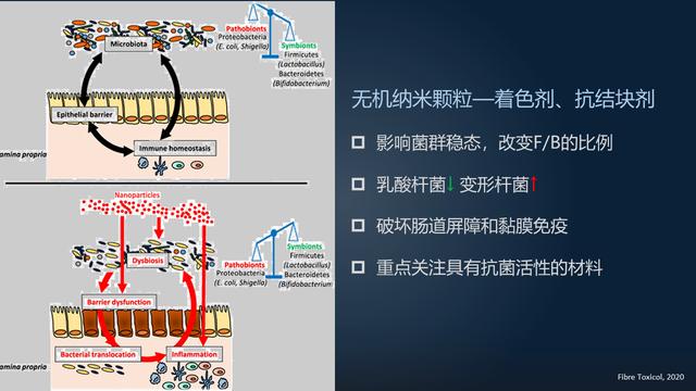 這提醒我們在做納米復(fù)合材料的安全風(fēng)險評估的情況下,我們要高度重視腸菌在這其中的主導(dǎo)作用,尤其是這些宣傳策劃或是是聲稱自身具備抑菌、殺菌作用的原材料。