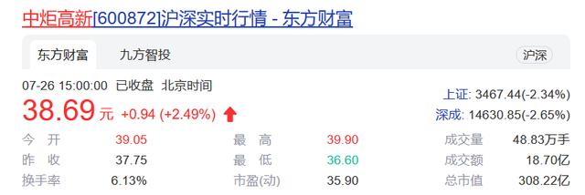 金融投資報新聞記者注意到,不知道是不是受該信息危害,7月26日,中炬高新在股票大盤下跌的情況下趁勢標紅。截止到收市時,股票價格增漲2.49%,測繪通報38.69元。