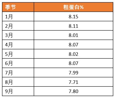 表2 不一樣時(shí)節(jié)苞米粗蛋白差別