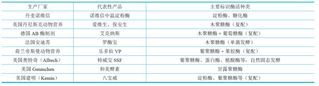 表4 國(guó)際性酶制劑公司制造的復(fù)合型酶制劑統(tǒng)計(jì)分析及剖析