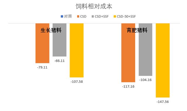 那麼精飼料的成本費(fèi)發(fā)生了什么樣的轉(zhuǎn)變呢?在此次實(shí)驗(yàn)中也開(kāi)展了較為(圖5)。對(duì)比于對(duì)比苞米豆柏日糧的成本費(fèi),應(yīng)用實(shí)驗(yàn)加上量的DDGS能減少生長(zhǎng)發(fā)育豬料成本費(fèi)約80 元//噸,在育肥豬環(huán)節(jié)能控制成本117 元//噸。而立即在CDS日糧中同時(shí)加上特威寶SSF,均值精飼料成本費(fèi)能減少約85 元//噸,而將秘方動(dòng)能下降后相互配合SSF應(yīng)用,經(jīng)濟(jì)收益最大,精飼料成本費(fèi)均值能降低127 元//噸。