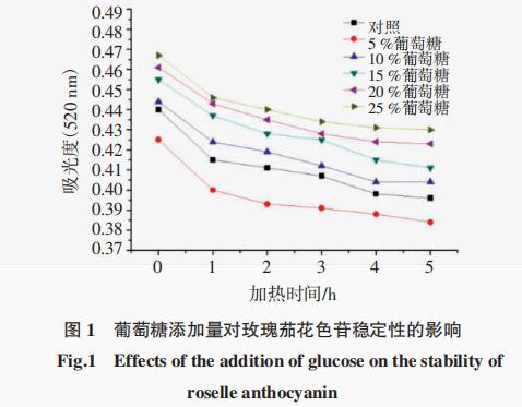 葡萄糖水加上量對(duì)玫瑰茄花色苷可靠性的干擾規(guī)律性如圖所示1所顯示。