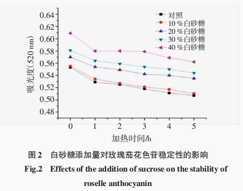 白糖加上量對(duì)玫瑰茄花色苷可靠性的干擾規(guī)律性如圖所示2所顯示。