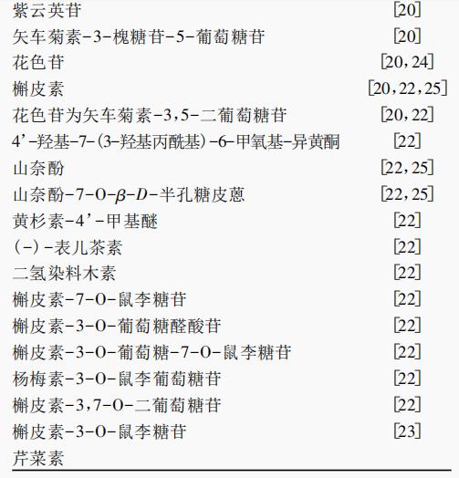 黃酮類是玫瑰的關(guān)鍵成分之一,關(guān)鍵為黃酮類苷和黃酮醇類,全部種類玫瑰帶有的花色苷是矢車菊素-3,5-二葡萄糖水苷,我國的玫瑰花品種中還帶有葡萄糖水苷.目前為止,從玫瑰中國共產(chǎn)黨分離出來并檢驗到30多種黃酮類化合物、多糖類成份,其化學物質(zhì)名字如表2列出.