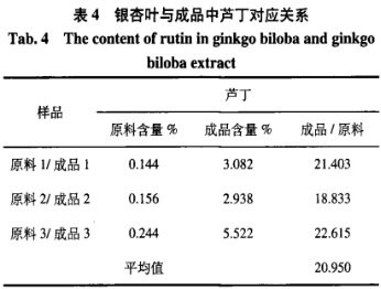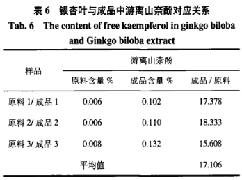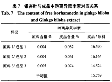 以分散三奈酚為例子剖析,原材料l和原材料2中分散三奈酚成分小于原材料3中成分,制成品1和2中分散三奈酚成分也小于制成品3,故原材料中分散黃酮類成分與制成品中分散黃酮類成分呈成正比。以當(dāng)前的原材料和制成品剖析,可獲得原材料與相匹配銀杏樹葉提取液間分散黃酮類成分比率均值為:蘆丁為20.950,原兒茶醛為23.100,三奈酚為17.106,異鼠李素為15.759。這能為銀杏樹葉提取液生產(chǎn)商在挑選選購(gòu)銀杏樹葉時(shí)給予一定的根據(jù),以求從原材料階段操縱商品中分散黃酮類的成分。