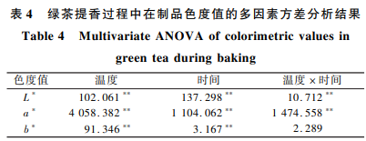 3個不一樣出香味溫度解決下,在產(chǎn)品L∗、a∗和b∗的轉(zhuǎn)變?nèi)^程見圖5。由圖5得知,在同一出香味溫度下,伴隨著時間的增加,L∗呈下降趨勢,a∗呈持續(xù)上升發(fā)展趨勢,b∗則在80℃中呈震蕩下降趨勢,100℃中展現(xiàn)先起伏降低后起伏升高的趨勢分析,120℃中呈震蕩增長的趨勢。而在不一樣出香味溫度下,總體上L∗主要表現(xiàn)為80℃>100℃>120℃,a∗和b∗主要表現(xiàn)為80℃<100℃<120℃,說明伴隨著出香味溫度的上升,在產(chǎn)品的色度減少,翠綠色顏色變?nèi)?淡黃色顏色提高。選用多要素方差分析進一步科學研究出香味溫度、出香味時間以及配對t檢驗對在產(chǎn)品飽和度值的危害,結(jié)果如表4所顯示。由表4得知,出香味溫度和時間對L∗、a∗及b∗均有極明顯危害。溫度與時間段的配對t檢驗對L∗和a∗的危害達極明顯水準,而對b∗無明顯危害。從F值看來,出香味溫度對a∗和b∗的危害水平超過出香味時間及環(huán)境溫度和時間段的配對t檢驗,出香味時間對L∗的危害水平略大出香味溫度的危害水平。