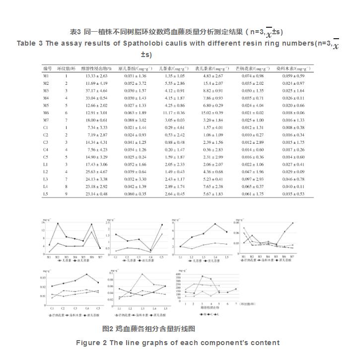 取雞血藤手鐲粉末狀1.0 g,高精密稱取,每次中藥材平行面3份,按“2.2.3”項(xiàng)下方式制取供試品水溶液并舉樣測量,并測算成分。結(jié)果見表3和圖2。