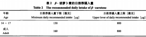 英國、澳大利亞和一些歐洲各國以500,000樣版做出的時興性病學(xué)調(diào)研數(shù)據(jù)顯示:均值每日強(qiáng)烈推薦攝取2~7mg全反式β-胡羅卜素是安全可靠的,可做為日強(qiáng)烈推薦攝人量。在中國發(fā)布的《(保健食品原料目錄(一)》中,不一樣年齡階段群體的全反式盧一胡羅卜素強(qiáng)烈推薦攝取量詳細(xì)信息見表1。比照歐洲國家和國內(nèi)的日強(qiáng)烈推薦攝取量差別明顯。在我國在保健品中要求的應(yīng)用限制(1.2mg/d)遠(yuǎn)少于歐洲國家的應(yīng)用限制(7mg/d)。