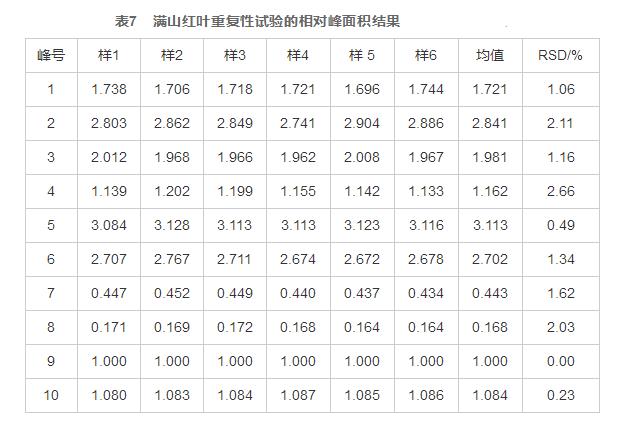 本分析應用高相液相色譜儀分析方法,創(chuàng)建了滿山紅葉的指紋圖譜,該指紋圖譜能夠 全方位呈現(xiàn)滿山紅葉成分的特性,適用因原產地、批號、生長發(fā)育自然環(huán)境等要素的不一樣,發(fā)生的品質不均勻一的滿山紅葉。該方式簡單易行,指紋識別峰分離度好,具備較高的真實度,為事后滿山紅葉的科研開發(fā)設計給予科學論證。