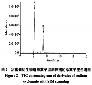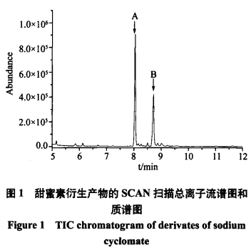 AgilengtGC-MSD(7890A-5975C)(英國安捷倫儀器企業(yè)),離子交換柱:HP-5MS(30mx0.25mmx0.25um)﹔環(huán)己基氨基磺酸鈉標(biāo)準(zhǔn)物質(zhì)(純凈度99.8%),正已烷(HPLC級(jí)),亞硝酸鈉、鹽酸、氧化鈉〈分析純)。