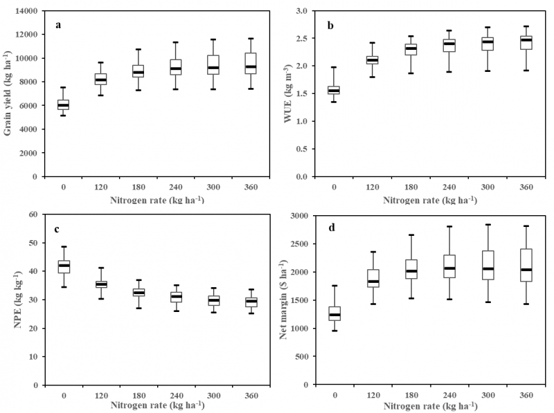 黃淮海平原冬麥生產(chǎn)制造中氮肥的不科學(xué)使用不但減少了基肥的利用率,并且提高了水體污染的風(fēng)險(xiǎn)性。該科學(xué)研究運(yùn)用2年的評測數(shù)據(jù)信息對DSSAT-CERES-Wheat實(shí)體模型開展校準(zhǔn)和認(rèn)證,再添加近40年的歷史時(shí)間氣象數(shù)據(jù),剖析不一樣氣候場景下施氮量對灌溉冬麥生產(chǎn)量、水份利用率、基肥利用率和凈收益的危害。根據(jù)綜合分析,科學(xué)研究得到黃淮海平原灌溉冬麥的施氮量為180 kg/公畝。對比農(nóng)業(yè)試驗(yàn),該科學(xué)研究考慮到不一樣氣候場景,能夠更合理地為灌溉冬麥營養(yǎng)物管理方法給予理論來源,也為基肥提升管理方法帶來了新的研究思路。