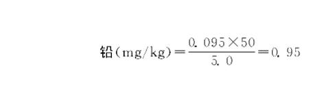 上式中:試驗(yàn)測算所得的含鉛量為0.95mg/kg,此項(xiàng)指標(biāo)值均合乎在我國國家行業(yè)標(biāo)準(zhǔn)低于1mg/kg。