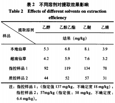 試驗室關(guān)鍵對當然晾干神仙草開展破碎,試品中帶有黑色素等其它化學(xué)物質(zhì),而依據(jù)苯甲醛特性,微溶解水、可溶于酒精、醫(yī)用乙醚等有機溶液,因而試驗室選用酒精、乙酸丁酯、醫(yī)用乙醚、乙腈幾類試驗室常見有機溶液對試品開展獲取,苯甲醛在水解情況下到水里溶解性比較大,因而在試樣中添加硫酸堿化試品,并添加氧化鈉,減少苯甲醛在水看中的溶解性,根據(jù)液液分派,做到對神仙草中苯甲醛的獲取。試驗結(jié)果顯示:醫(yī)用乙醚獲取實際效果最好是。