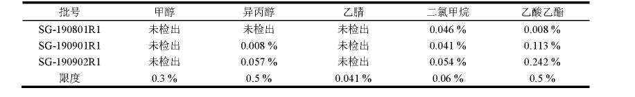 結果顯示,3批試品中殘余有機溶劑的成分均合乎《中國藥典》2020年版四部要求。