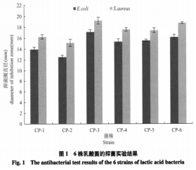 選用兩層瓊脂粉蔓延法,將10mL殺菌素瓊脂粉固體培養(yǎng)基倒進(jìn)無(wú)菌檢測(cè)細(xì)胞培養(yǎng)皿中,待徹底凝結(jié)后做為最底層培養(yǎng)液,每皿按方形四角部位輕放進(jìn)4個(gè)無(wú)菌檢測(cè)牛津杯,將0.1mL濃度值為l×108CFU/mL的標(biāo)示菌液加至10mL制冷至45~50℃的LB固體培養(yǎng)基中,當(dāng)心攪拌后倒至最底層培養(yǎng)液上,留意不能加到牛津杯里,待其徹底凝結(jié),做為菌層培養(yǎng)液。當(dāng)心取下牛津杯,留意不能影響已產(chǎn)生的孔眼,向直徑大約為8mm孔眼內(nèi)添加待檢CFS,37℃厭氧發(fā)酵塑造18h后,精確測(cè)量抑菌圈直徑。選用大腸埃希菌和金黃鏈球菌做為指示菌,與此同時(shí)用鹽水做為對(duì)比。