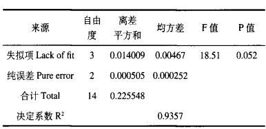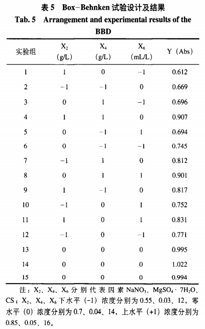 吸光度值=1.0037 0.0204X2 0.0489X4 0.0442X6-0.1100X2X2-0.0925X4X4-0.1522X6X6-0.0132X2X4 0.0595X2X6 0.0640X4X6