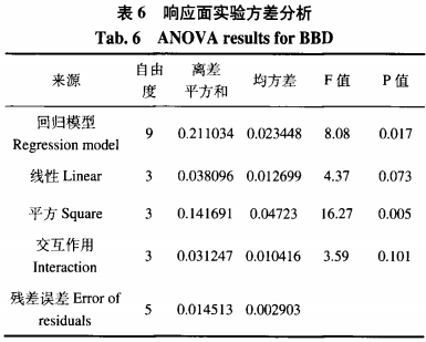 6、響應(yīng)面實(shí)驗(yàn)方案設(shè)計(jì)及結(jié)果