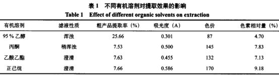 不一樣有機(jī)溶液對(duì)干紅辣椒中辣椒紅色素獲取 實(shí)際效果的危害見表1。