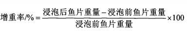 (4)體重增加率魚肉泡浸前和泡浸后各自用漏眼筐45夾角浸盆3min后,秤重,計算方法如下所示: