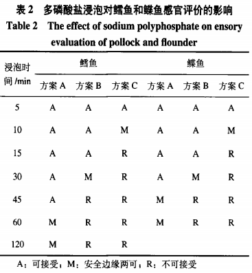 4、多聚磷酸鹽泡浸對(duì)銀鱈魚、鰈魚感觀評(píng)論的危害