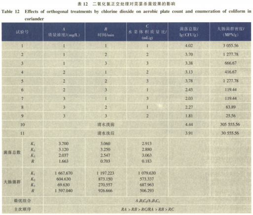 2.2二氧化氯正交和解決對(duì)蕪荽減菌實(shí)際效果的提升