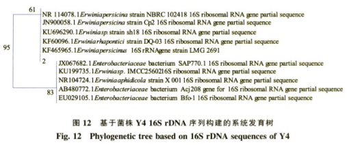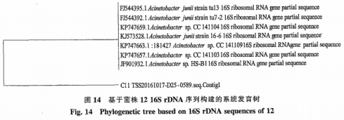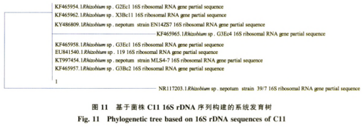 根據(jù)增加得到不一樣菌種的16SrDNA片段,經(jīng)序列比對(duì),由MEGA手機(jī)軟件搭建的病菌系統(tǒng)發(fā)育樹及編碼序列間距見(jiàn)圖11-圖17,進(jìn)而明確病菌屬種。從現(xiàn)切香菜中分離純化獲得的7株病菌,可歸類為致腐菌、病原菌與一般菌。從圖11-圖17先后評(píng)定為凱里歐文氏菌屬、假單胞菌屬、氣單胞菌屬、不動(dòng)桿菌屬、拉恩氏菌屬、根瘤菌屬和腸桿菌屬。
