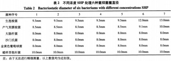 (3)SHP對肉食品中普遍有危害菌的抗菌結(jié)果