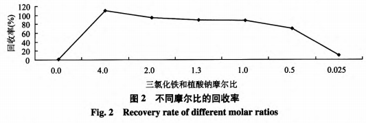 經(jīng)進(jìn)一步搜索參考文獻(xiàn)發(fā)覺,針對僅有甲基對硫磷或僅有無機(jī)磷的試品,選用磷鉬藍(lán)法和磷鉬黃法開展檢驗(yàn)方式行得通,但針對植酸鈉試品其絕大多數(shù)是植酸磷,僅有一小部分殘?jiān)鼮闊o機(jī)磷,因而在檢驗(yàn)時要除去植酸磷的栽培基質(zhì)危害。鐘正升等著作文章內(nèi)容中詳細(xì)介紹“植酸最明顯的特征是與絕大部分金屬離子有極強(qiáng)絡(luò)合作用和耐熱性能。它有著比EDTA更強(qiáng)的絡(luò)合工作能力,能與正離子Ca、zn、Mg、Fe等絡(luò)合作用產(chǎn)生不可溶復(fù)合型鹽”,祝豪杰等也提及“植酸的抗氧化性特點(diǎn)取決于它能與金屬離子產(chǎn)生很強(qiáng)的絡(luò)合功效”。因而文中考慮到運(yùn)用植酸與金屬離子的絡(luò)合功效除去植酸鈉。擬將試品水溶液中添加三氯化鐵溶液,使其產(chǎn)生沉積,快速離心式棄去沉積后再用磷鉬黃法開展檢驗(yàn)。