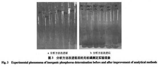 從圖2能夠 看得出,當(dāng)不加上三氯化鐵或三fecl3加上量太多時,無機(jī)磷的利用率都很低,當(dāng)三氯化鐵加上量在1.37~2.75mL中間時,無機(jī)磷利用率最大,又為便捷操作過程,按三氯化鐵加上容積為2mL,開展上邊實(shí)際操作,所得的無機(jī)磷利用率為100.79%~101.93%中間,試驗(yàn)結(jié)果顯示,加上0.1%磷標(biāo)液有顯著回收利用,可達(dá)到限定指標(biāo)值實(shí)驗(yàn)。最終挑選三氯化鐵加上容積為2mL。圖3.b中1~11號比色管即是試品和加上,能夠看得出加上與呈陰性試品有顯著差別,能夠看得出與沒經(jīng)改善的圖3.a有顯著區(qū)別。