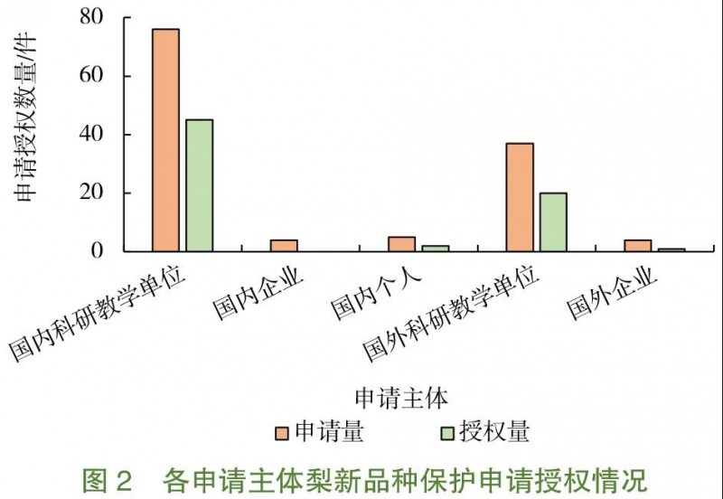 各申請辦理行為主體梨優(yōu)良品種權(quán)申請辦理受權(quán)狀況