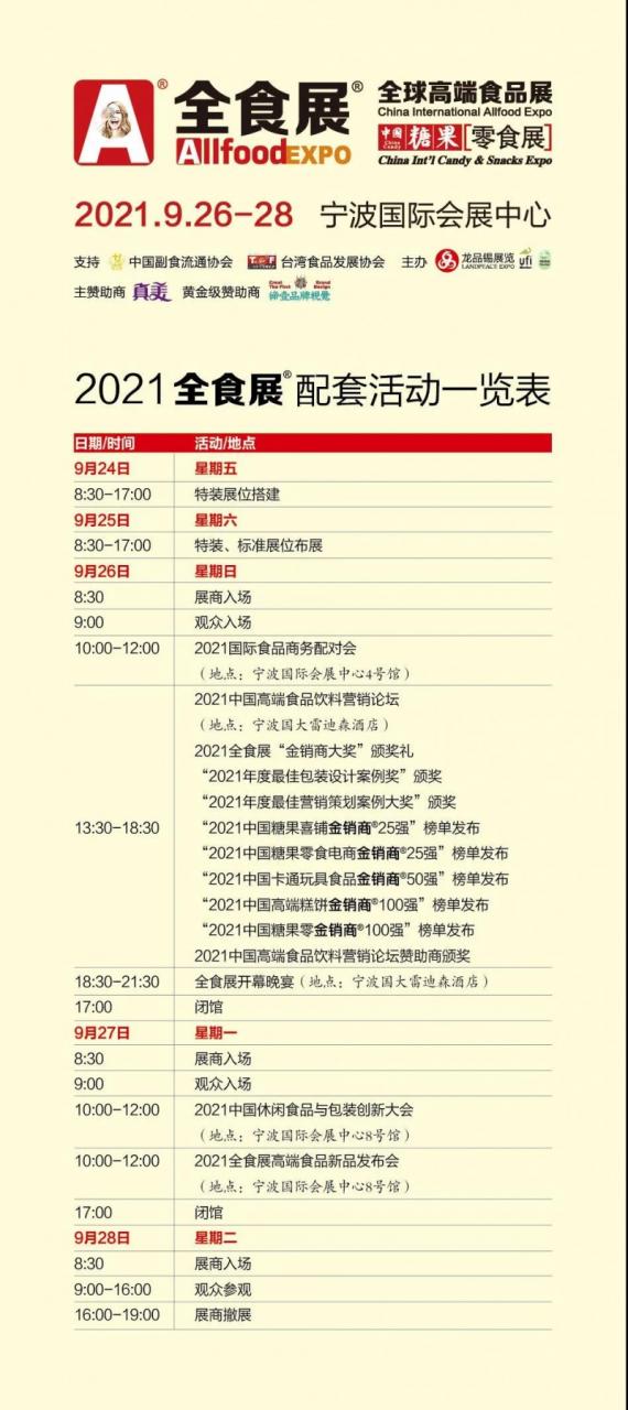 剛,全食展主辦方對外開放發(fā)布了2021秋天全世界高檔食品類展會暨我國糖塊零食展會(全食展)詳盡配套設(shè)施主題活動一覽表。
