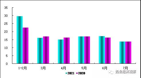 依據(jù)國家統(tǒng)計數(shù)據(jù)信息,2021年1-7月全國各地液奶生產(chǎn)量1636.52萬噸級,同比增加14.61%,在其中7月239.61萬噸級,同比增加0.31%。