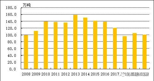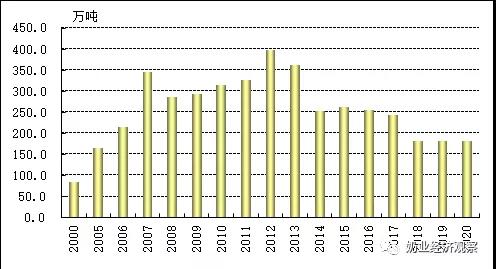 注:規(guī)模以上企業(yè)乳制品公司(年銷量2000萬元及之上)的生產(chǎn)量統(tǒng)計分析,每一年公司總數(shù)不一樣。