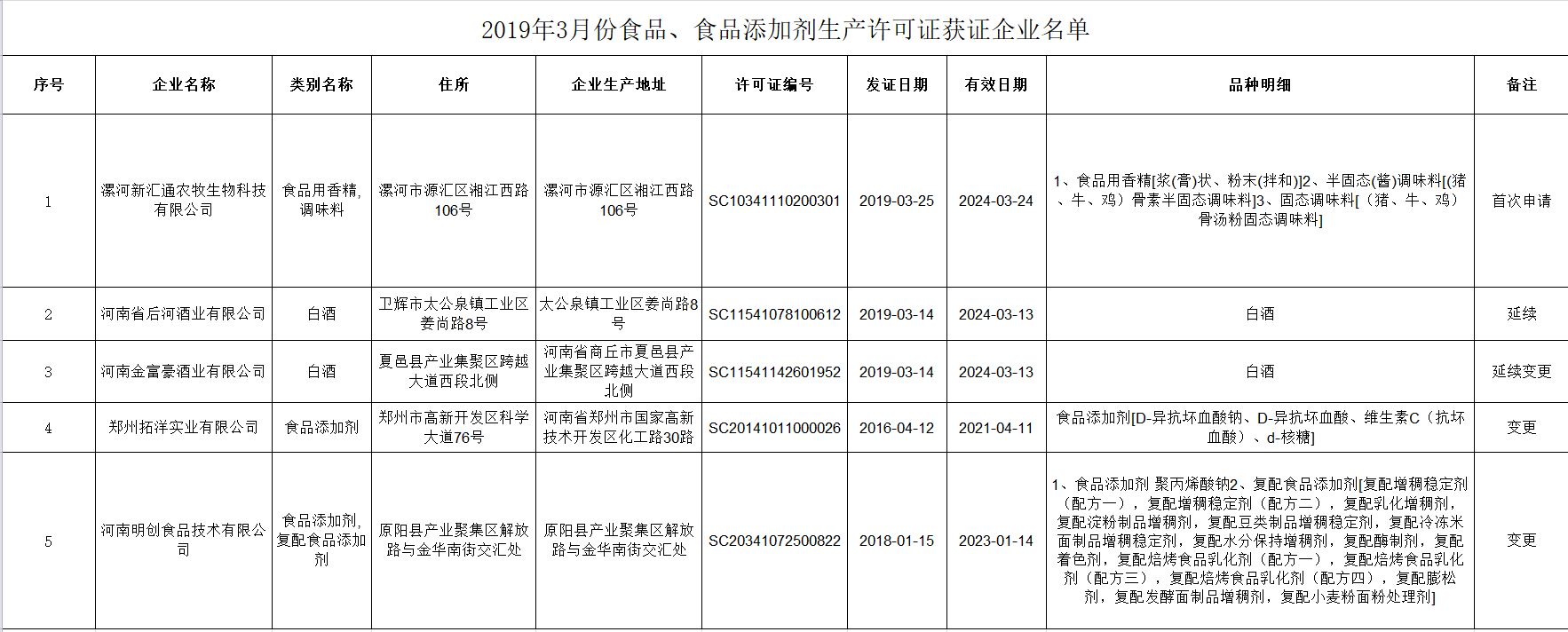 河南省市場(chǎng)監(jiān)督管理局關(guān)于食品、食品添加劑生產(chǎn)許可證獲證企業(yè)的公告