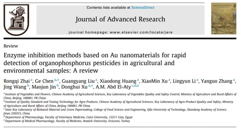 近日,中國農(nóng)業(yè)科學(xué)院蔬萊花草研究室產(chǎn)品質(zhì)量研究組在根據(jù)金納米復(fù)合材料的酶抑止方式 快速檢測有機(jī)磷類層面獲得重大進(jìn)展,有關(guān)科學(xué)研究 “Enzyme inhibition methods based on Au nanomaterials for rapid detection of organophosphorus pesticides in agricultural and environmental samples: A review”發(fā)布在國際性學(xué)術(shù)刊物Journal of Advanced Research上(IF= 10.479,DOI:10.1016/j.jare.2021.08.008)。